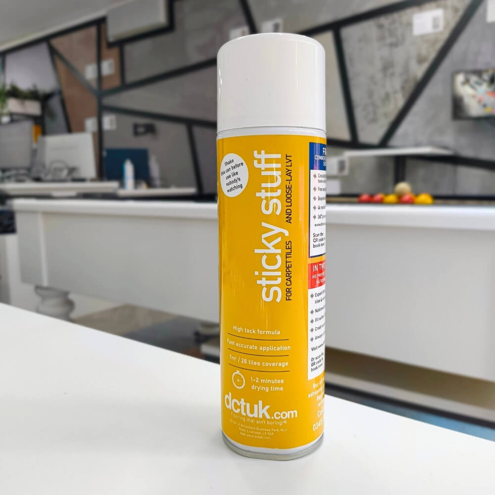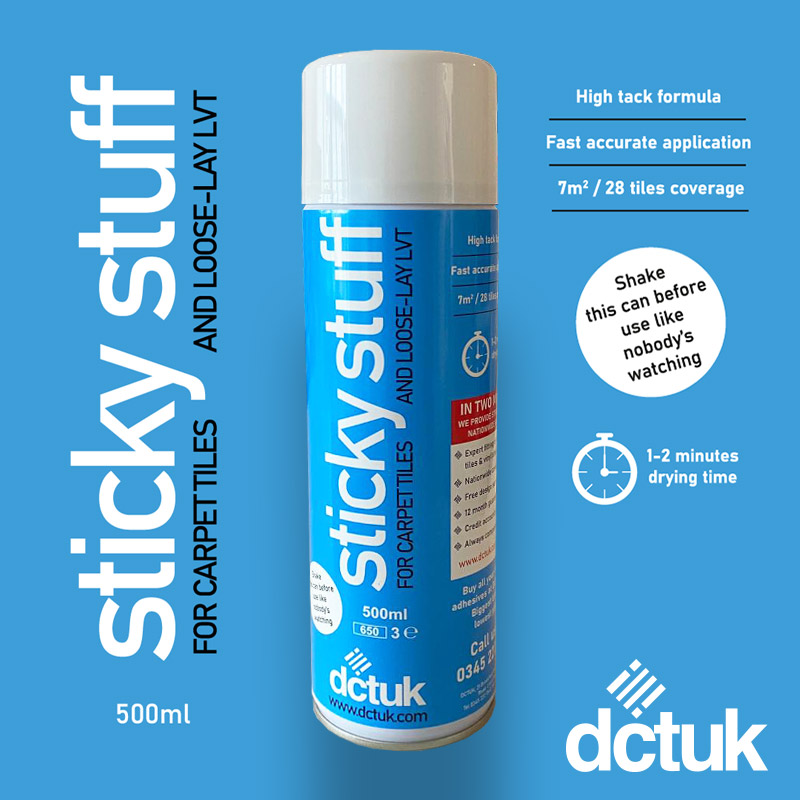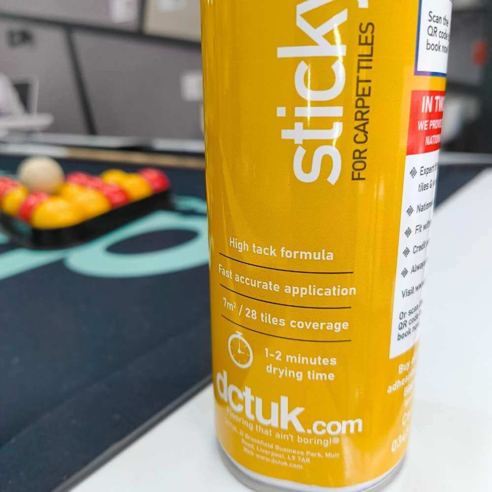For all residential projects and small commercial projects, DCTUK Sticky Stuff is the perfect spray can adhesive for carpet tiles. It is designed to be a semi-permanent solution which means it won't leave that nasty brown residue if you do decide to change the flooring at a later date.