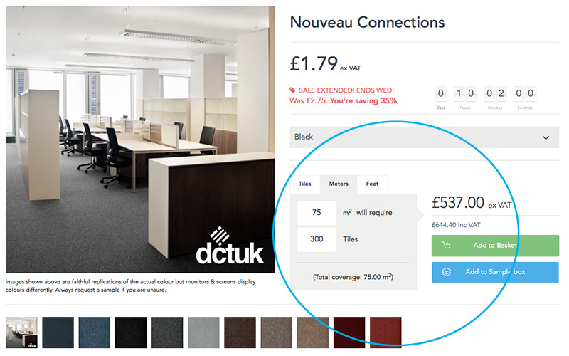 Once you've got your measurements - all present and correct - you can head over to your chosen product page where you'll find a handy little carpet tile calculator. Whether you're doing the math in metres or keeping it old skool in feet, we've got you covered.