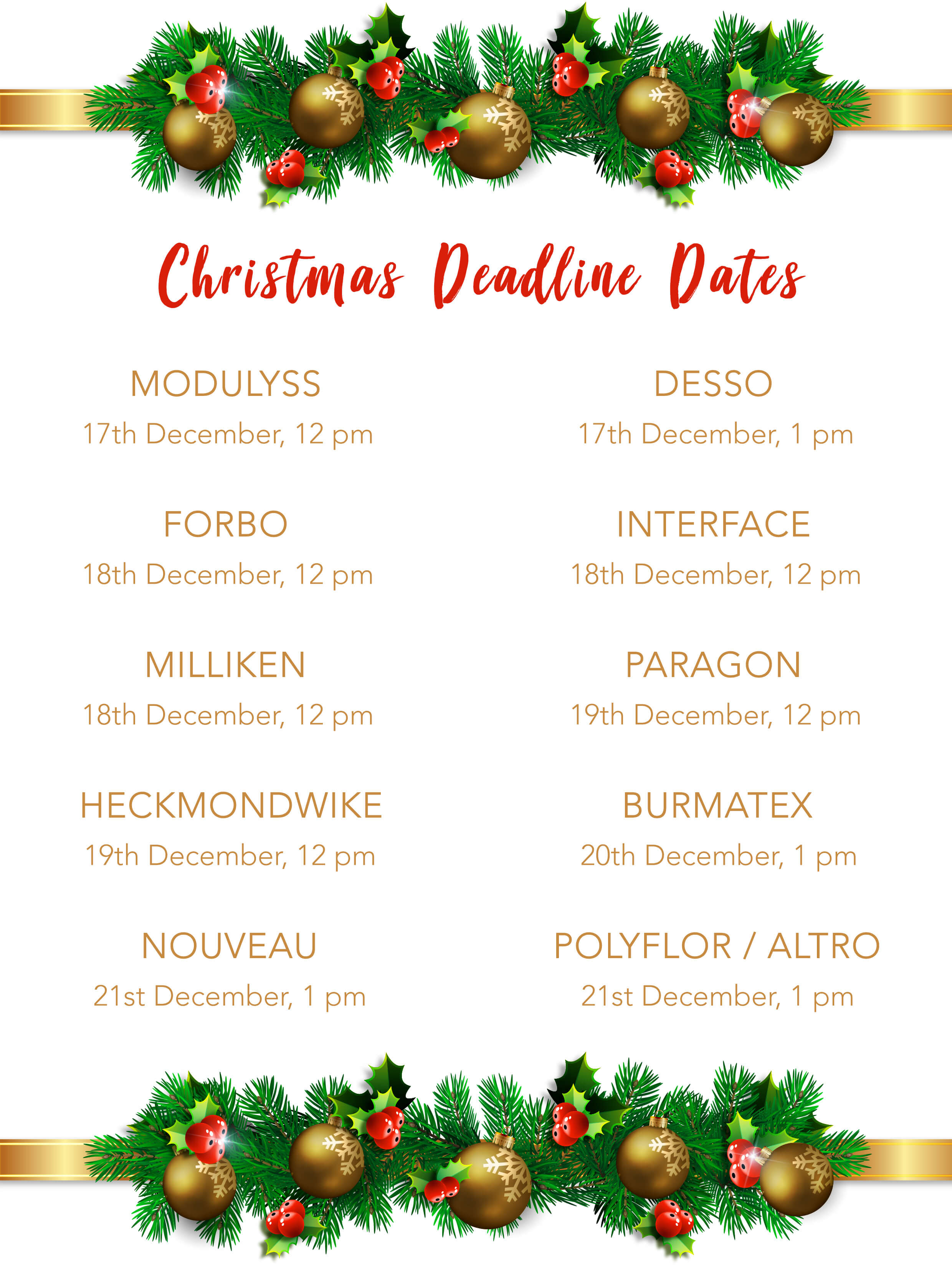 Christmas is a very busy period for both ourselves here at DCTUK and the little elves down at the delivery depot and we wouldn’t want you to receive your order late! So if you want to get your flooring order delivered in time for Christmas there’s a few dates you need to bare in mind…