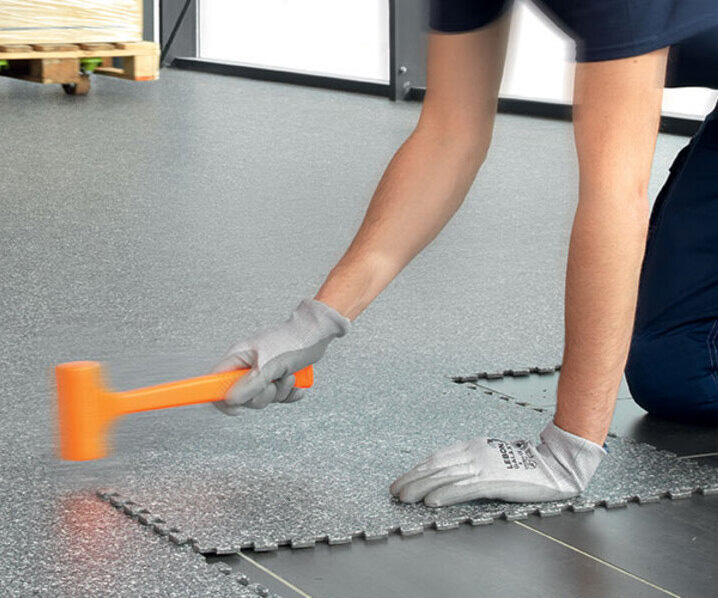 Gerflor recommend using an anti-bounce mallet to install these vinyl tiles to allow for easier installation and without damaging the tiles! Other tools you'll likely need are a cutter, tape measure, and metal tracing wheel.