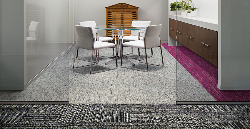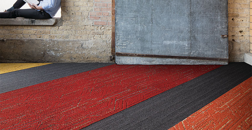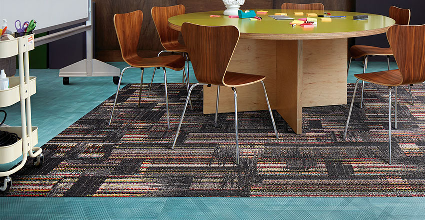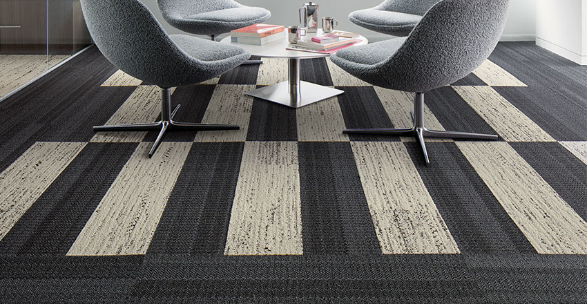 When the products in the Visual Code collection are used together they do not clash, they harmonise. This is also helped by the fact all Interface products are created using the same yarn/colour bank; so no matter the range, even LVT, they’ll work together perfectly and there will be no need to call the fashion police. Well, if there was a fashion police for modular carpet…