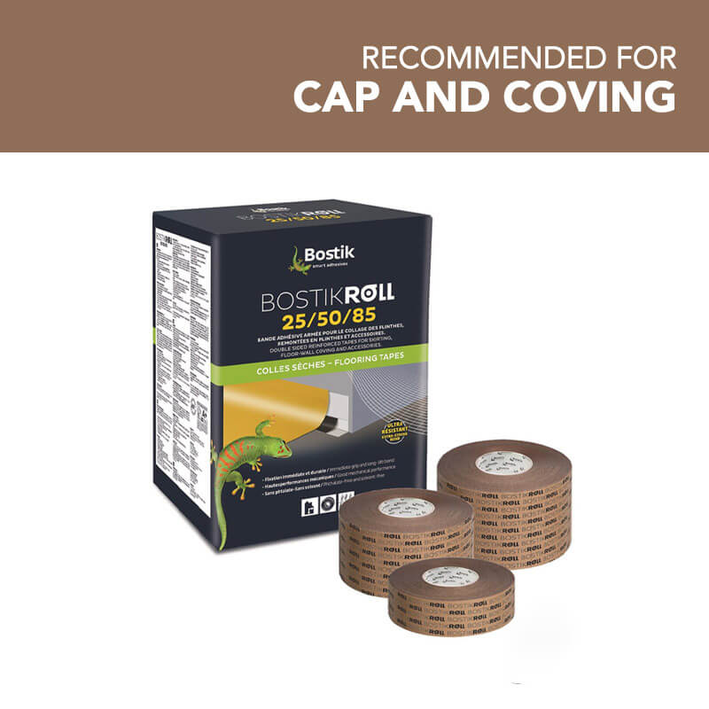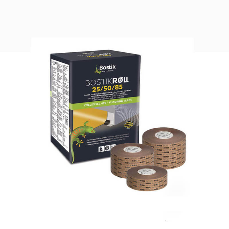 Bostik Roll is a 50 metres reinforced, solvent-free adhesive strip that has been specially designed for the fast installation of skirting, capping strips, cove formers and other floor or wall mounted accessories.