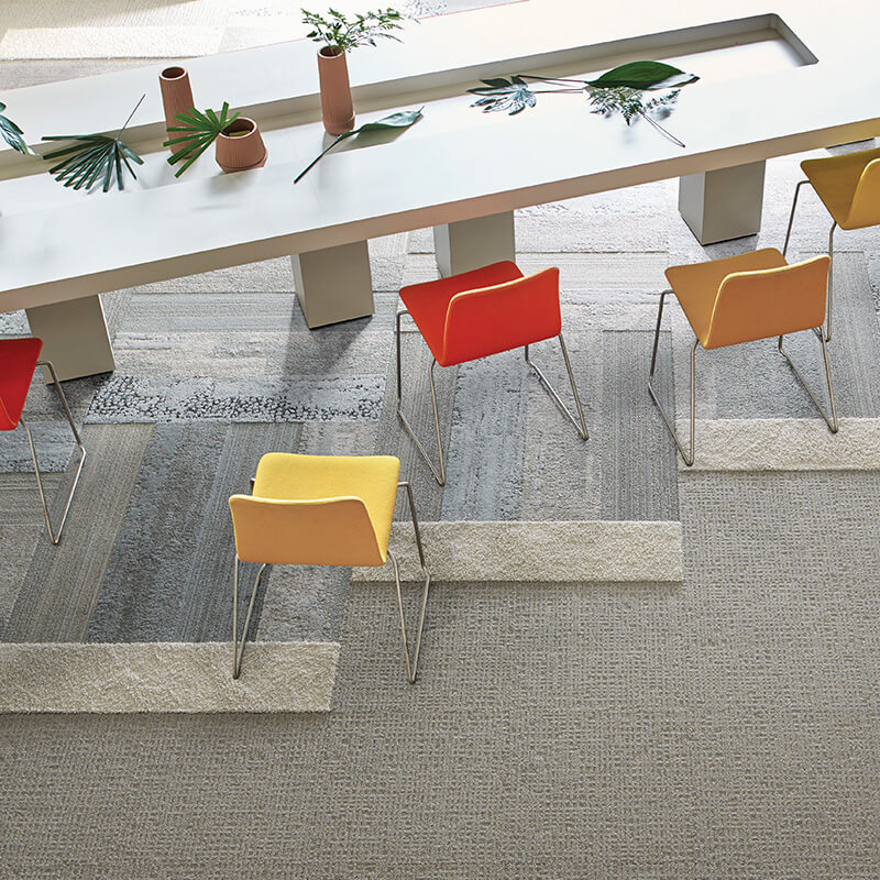 Interface HN850 is part of a collection of 5 different styled carpet planks which combine together seamlessly. Like everything in the natural world, transitions are varied, these planks allow for a fluid transition. Each plank has different hues and textures which allow to the transition between each plank.