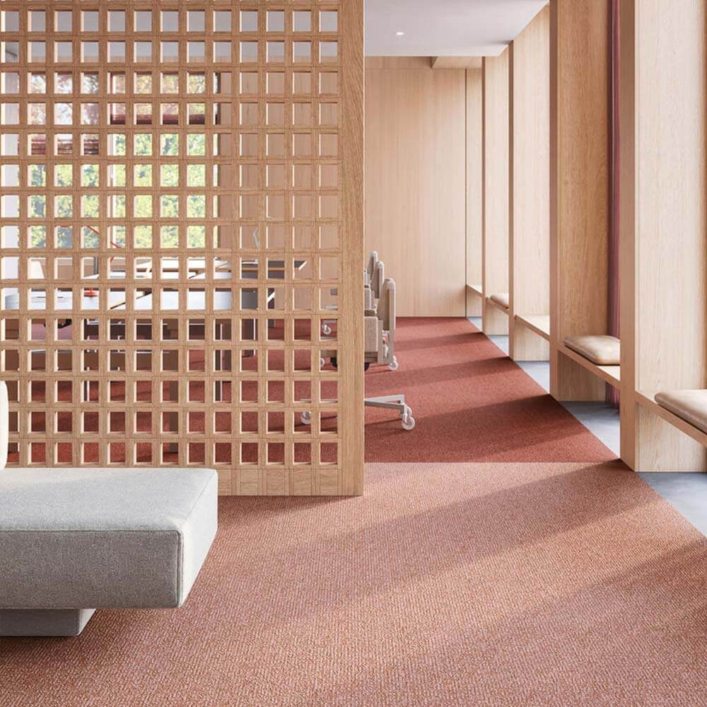 Step into a world where light dances and patterns play, with the captivating Tarkett DESSO Enlaced carpet tile collection. Inspired by the soft, filtered light peeking through intricate grids, Enlaced brings a unique soft graphic design and a comforting, inviting atmosphere to any modern interior.