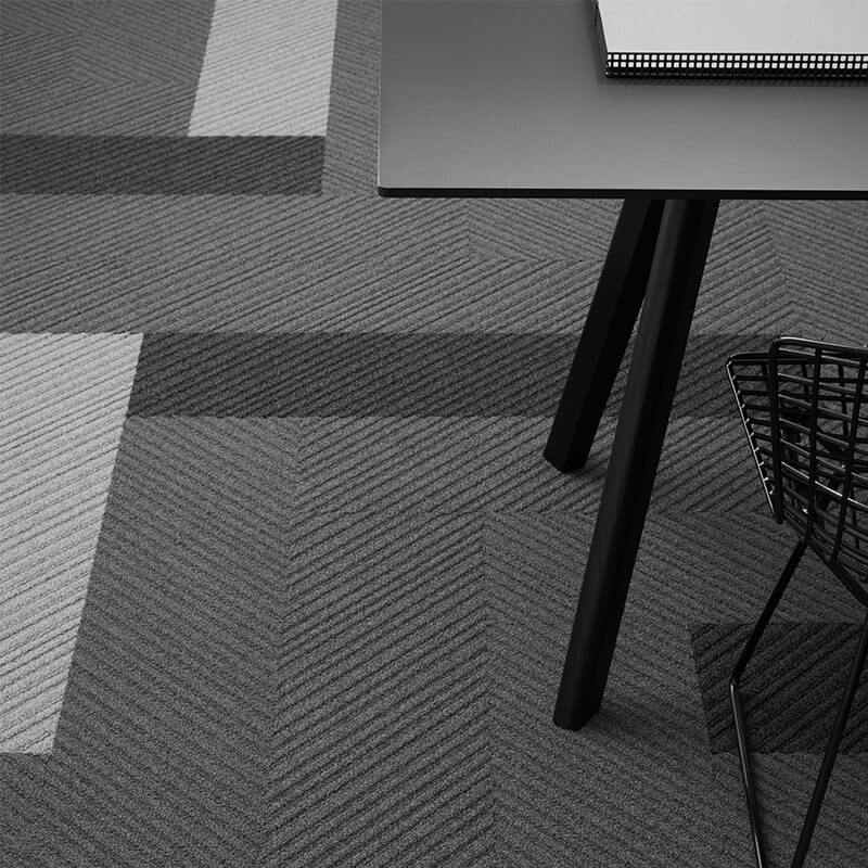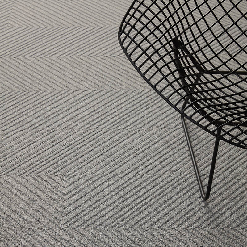 Inspired by iconic modernism, the Desso Traverse range of carpet plank designs feature simple diagonal lines. These are created by slight differences in dye hues but also by slight ridges in the yarn construction. Hence, the pattern you see depends on where you are in the room together with where the light source is coming from.