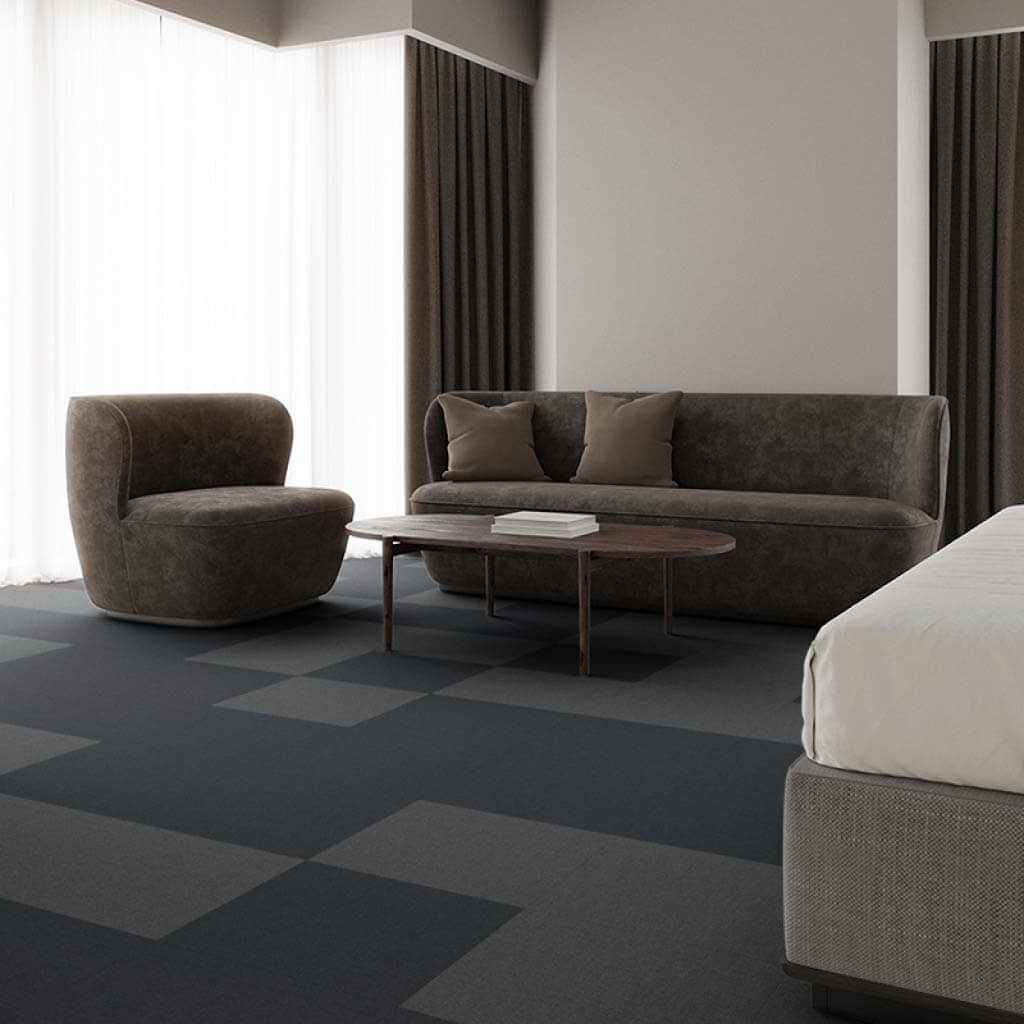 ReForm Maze carpet tiles emerges as a subtle network of interlinked passageways within the digital realm. Resembling an intricate labyrinth, the design is meticulously fashioned from a palette of harmonising shades, resulting in a gentle interplay across the velvety carpet expanse.😯