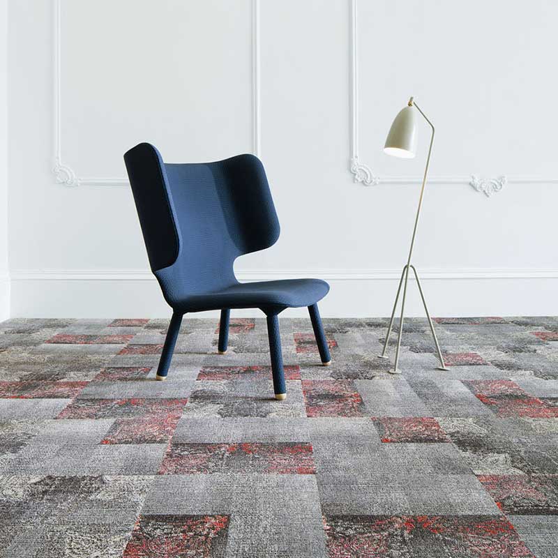 The traditional vintage pattern is still present in the carpet tile but when laid down, you can see it creates an almost geometric design which modernises the floor.