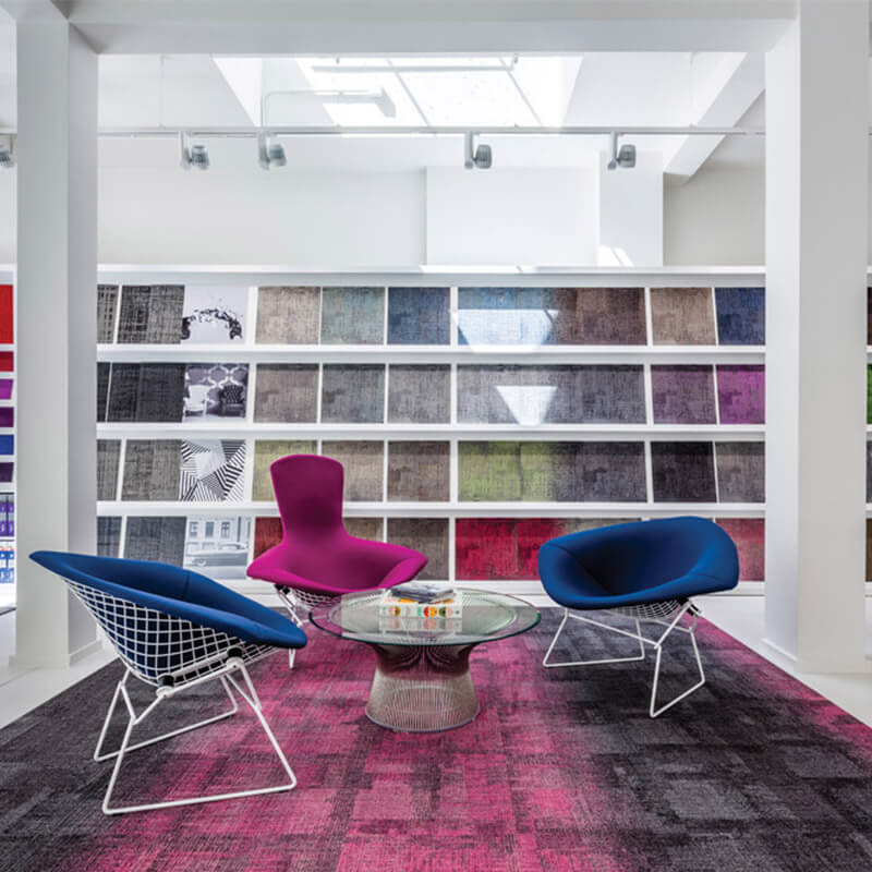 Milliken Dissident 2.0 introduces the blending and merging of different colours without hard lines. Taking both complementary colours as well as contrasting colours to create a range of 30 different colourways.