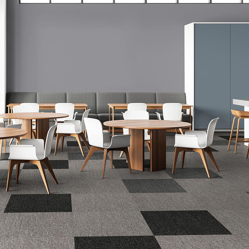 High Relief carpet tiles come in a variety of neutrals, from dark grey if you want to add some depth to your workspace or light beige if it needs some life!💁‍♀️