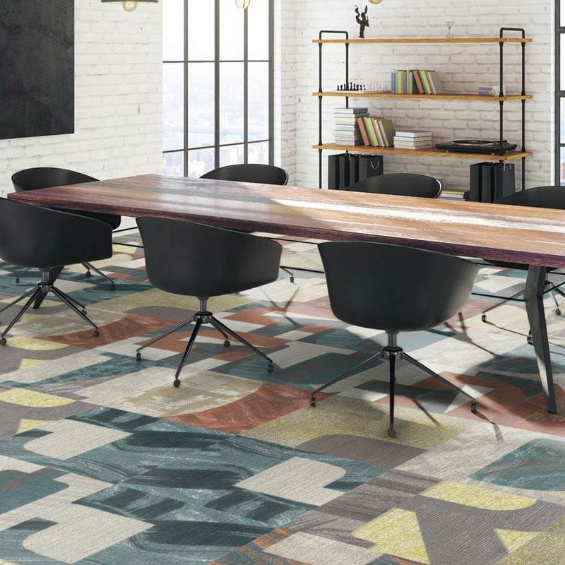 Milliken Northern Soul Night Flyer – because your office floors deserve a bit of mystery, just like your 2 a.m. thoughts. 🌙 These Milliken carpet tiles combine sleek, dark tones with bold pops of colour, creating a professional yet energizing vibe. They say ‘I’m here to work, but I’m also keeping things interesting.’ 😅