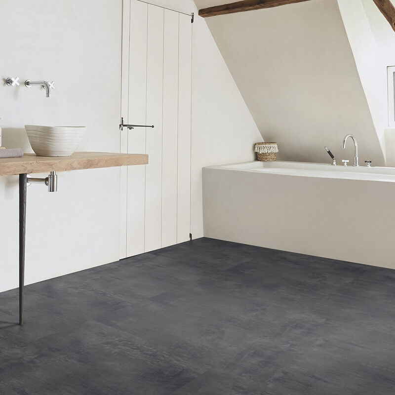 Tarkett Classics 30 Click Rigid luxury vinyl tiles in Vintage Zinc Black bring a bold, modern flair to your home. Perfect for kitchens, bathrooms, living rooms, and hallways, this flooring isn’t just about functionality; it’s designed to add an edgy, industrial-chic vibe that stands out. 🏠🖤