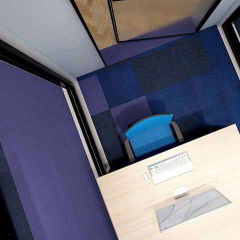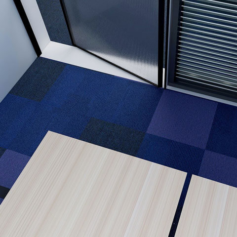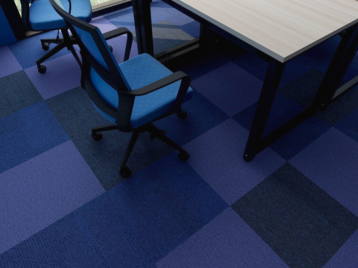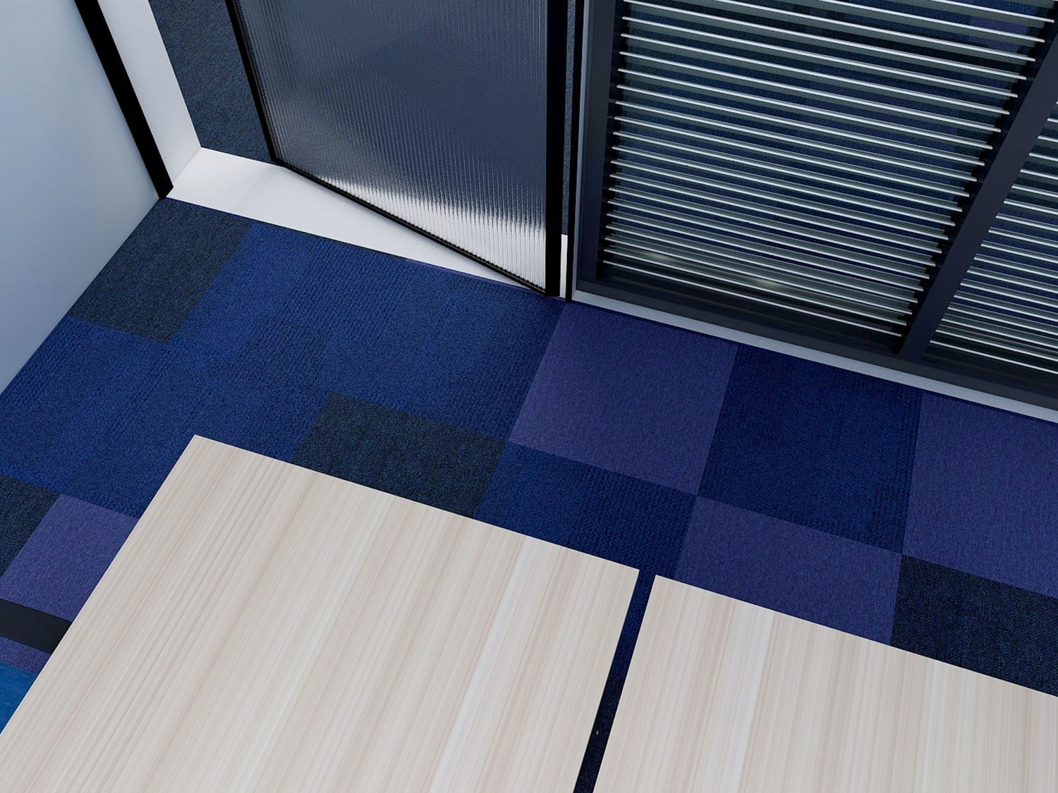Dive into the deep blue with our Solar Navy carpet tile design, a fantastic mix of three stellar carpet tiles that'll transform your workspace into an ocean of style. This design combines the Nouveau Carnival Royal Navy, Nouveau Apollo Solar Blue, and Interface Transformation Azure carpet tiles in a random lay pattern, creating a chequerboard, geometric look that’s as cool as the deep sea.