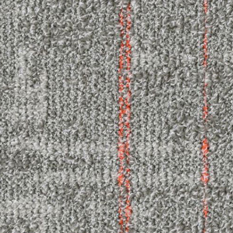 The delicate, vibrant strand interlaced within each carpet tile is reminiscent of the minimalistic beauty of a single hand-stitched line; contrasting subtle shades with an injection of colour.