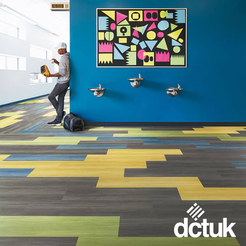This modern LVT range by Interface is alllllll about the colour. If you haven’t considered a Lime wood floor alternative you definitely have now. You can literally experience complete rainbow vibes in your interior space with this one. However, if you’re not feeling oh too vibrant then this range also includes some very on-trend, grey/brown tones for those who want a more classic look. Designed to sit next to modular carpet or other LVT ranges without the need of transition strips or connectors, Studio Set is the perfect product to help unleash your flooring design dreams.