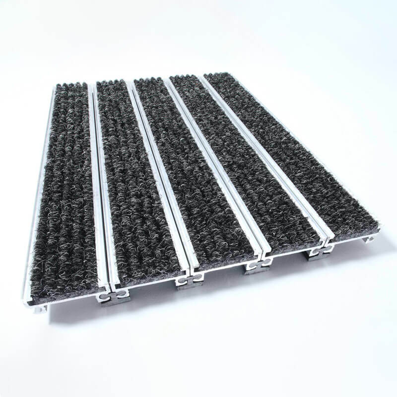 • Low profile rollable aluminium grid matting system