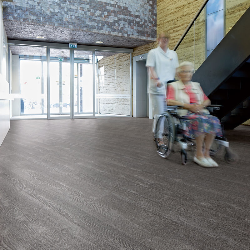 With a wet pendulum test rating of 36+ and 11 natural tones including the popular greys, Forbo Surestep Wood is the perfect flooring product for a variety of large spaces including hospitals, schools and nursing homes.