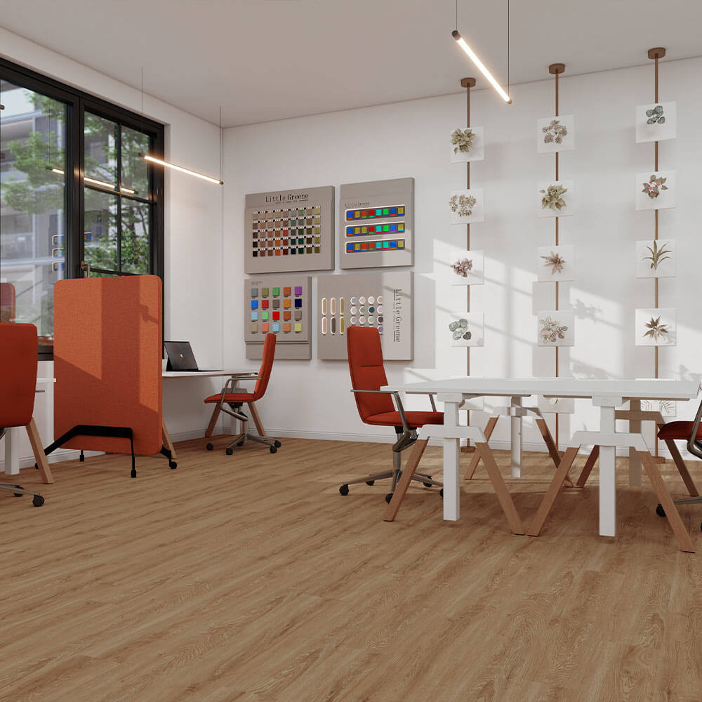 Dryback 55 is engineered for robust performance and a healthy interior: it is a glue-down product enabling fast, hard-wearing installation, suitable for high-traffic environments (Abrasion Group T) and classified as Bfl-s1 for fire safety. Furthermore, the collection is phthalate-free, 100% recyclable, and contains 25% recycled content, boasting A+ rated emissions for superior indoor air quality.Choose the Dryback 55 plank format for a timeless, elegant wood floor that delivers commercial-grade strength and genuine sustainability to your office, hotel, or communal space.