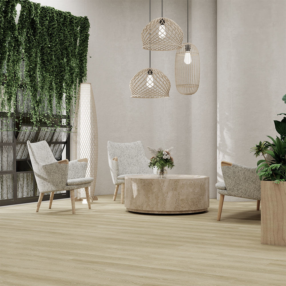 Dryback 55 is engineered for robust performance and a healthy interior: it is a glue-down product enabling fast, hard-wearing installation, suitable for high-traffic environments (Abrasion Group T) and classified as Bfl-s1 for fire safety. Furthermore, the collection is phthalate-free, 100% recyclable, and contains 25% recycled content, boasting A+ rated emissions for superior indoor air quality.Choose the Dryback 55 plank format for a timeless, elegant wood floor that delivers commercial-grade strength and genuine sustainability to your office, hotel, or communal space.