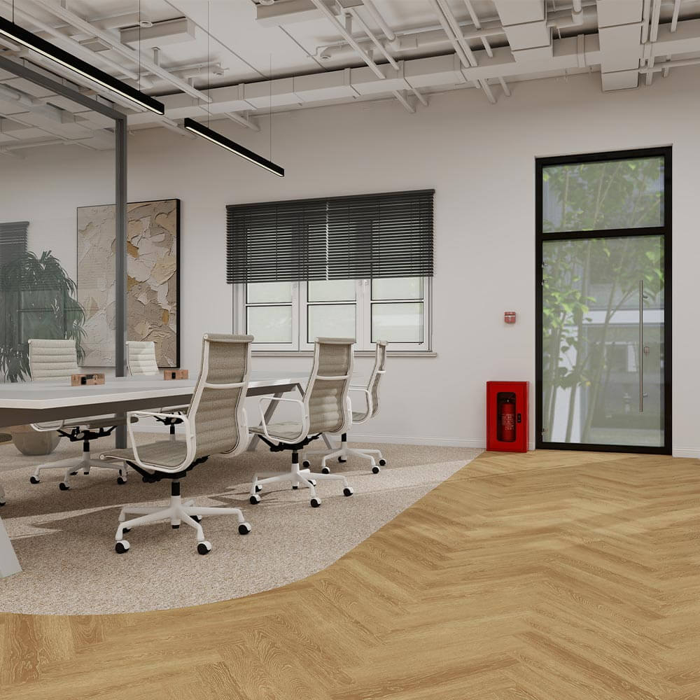 Choose Dryback 55 Herringbone to achieve the refined marquetry effect of traditional wood, backed by the strength and technical specifications required for modern commercial use.