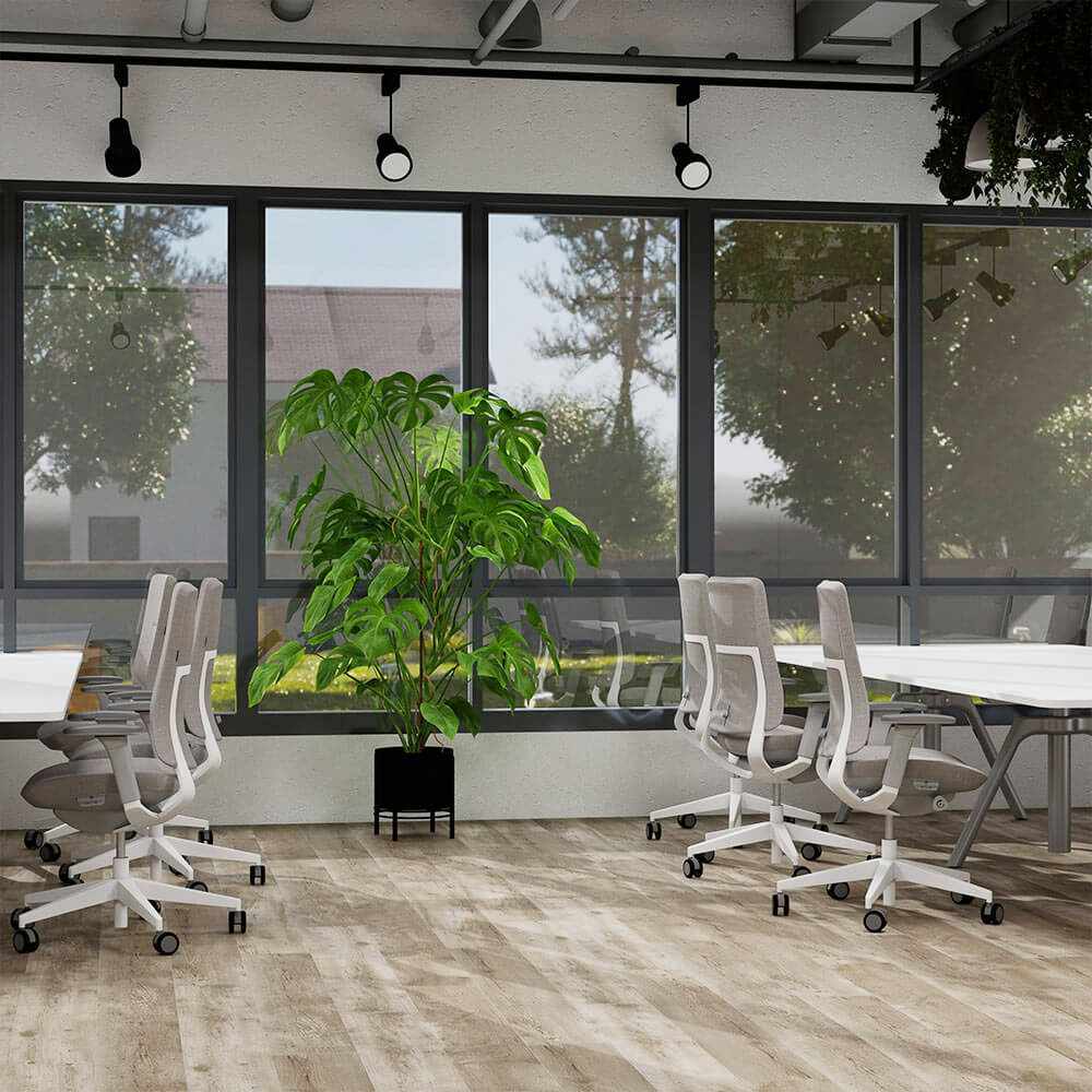Dryback 55 is engineered for robust performance and a healthy interior: it is a glue-down product enabling fast, hard-wearing installation, suitable for high-traffic environments (Abrasion Group T) and classified as Bfl-s1 for fire safety. Furthermore, the collection is phthalate-free, 100% recyclable, and contains 25% recycled content, boasting A+ rated emissions for superior indoor air quality.Choose the Dryback 55 plank format for a timeless, elegant wood floor that delivers commercial-grade strength and genuine sustainability to your office, hotel, or communal space.