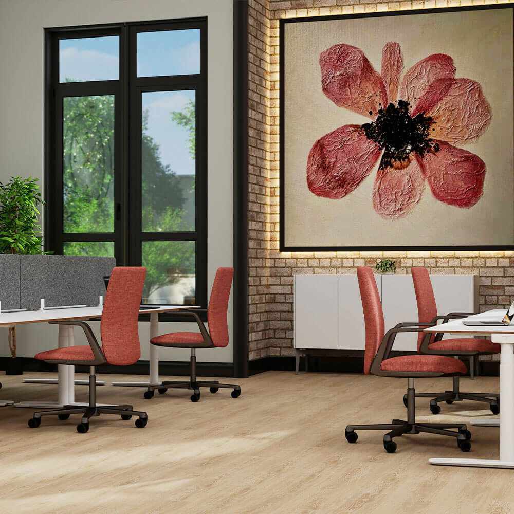 Acoustic Excellence is guaranteed: Thanks to its multi-layered structure and high-density foam backing, this LVT delivers a class-leading 19 dB impact sound insulation, creating a remarkably peaceful atmosphere. This inherent sound-dampening quality helps reduce noise from heels, squeaking chairs, and rolling items.