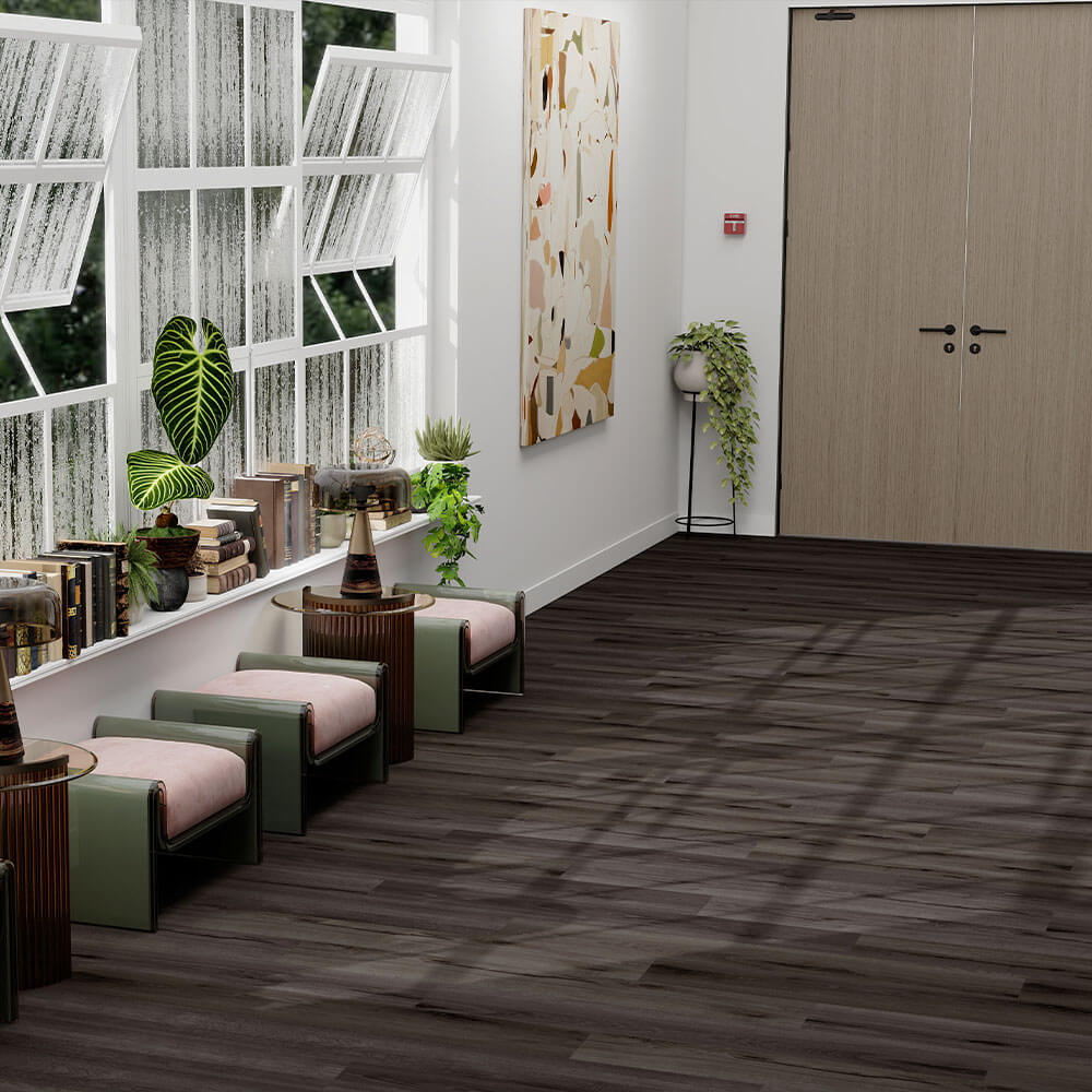 Acoustic Excellence is guaranteed: Thanks to its multi-layered structure and high-density foam backing, this LVT delivers a class-leading 19 dB impact sound insulation, creating a remarkably peaceful atmosphere. This inherent sound-dampening quality helps reduce noise from heels, squeaking chairs, and rolling items.