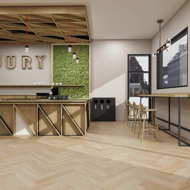 Built to withstand the daily hustle, BerryAlloc Zenn 55 Click Comfort Herringbone Faro is tough and ready for anything, making it ideal for busy commercial spaces.
