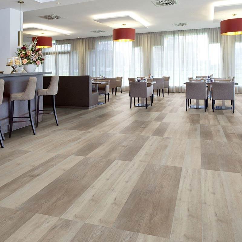 Whether you're jazzing up a cosy café or a chic restaurant, Allura Click Flexcore White Autumn Oak is the perfect solution. And guess what? It's even approved for use with castor chairs, so it's as tough as a squirrel in autumn! No underlay required! 🐿️🌟