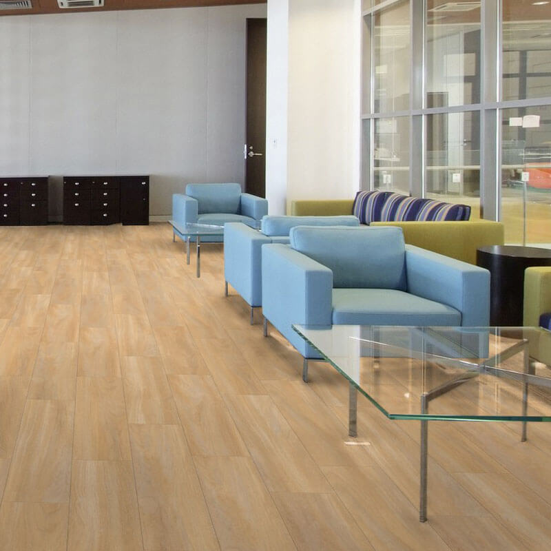 This plank is the ultimate tasty treat for all your flooring needs.😋 Say goodbye to difficult maintenance and unsightly scratches that come with traditional wooden floors.👋 The rich honey colour and natural-looking wood design🌳make it the perfect choice for commercial spaces.🏢 Don't miss out on this delicious deal, it's too good to pass up!