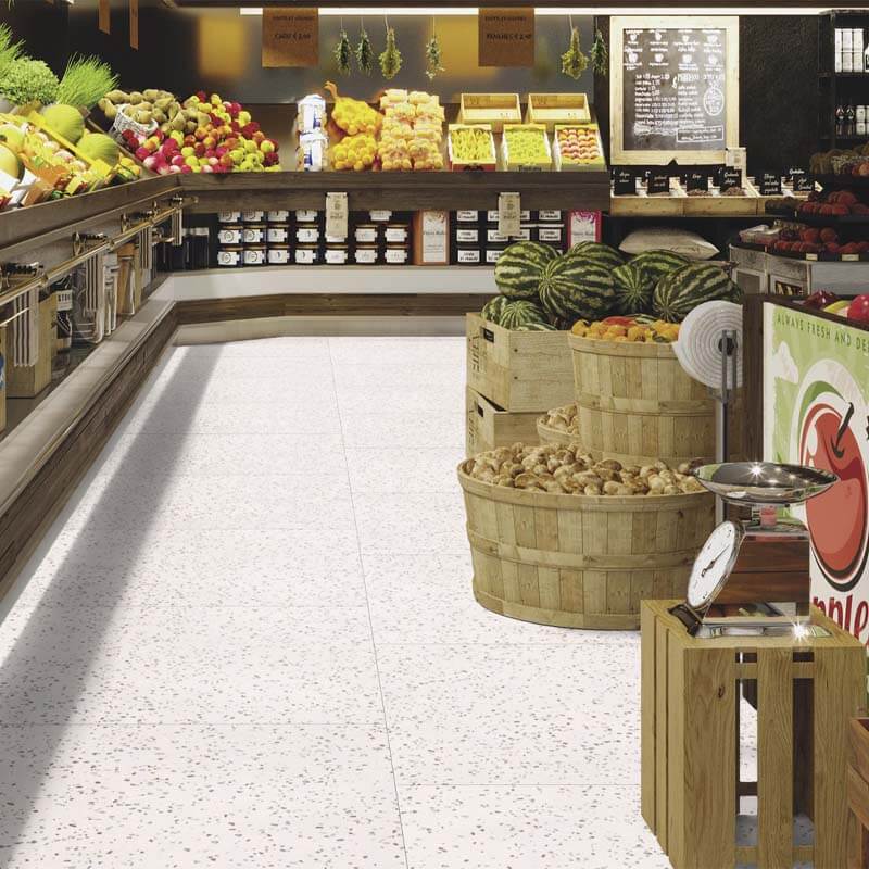 Measuring 914mm x 914mm, it's got a fantastic terrazzo-esque design that'll have your space looking snazzy.🤩 With a mineral design and a stone embossed finish🗿, this tile is nothing short of stunning.✨ And the best part is it's super tough💪 and a breeze to clean🍃, so you don't have to break a sweat!😅
