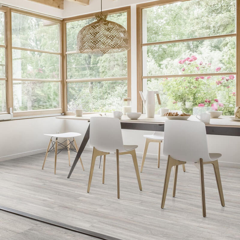 Swiss Oak Pearl is a glamorous 1239mm x 212mm LVT beauty with bevelled edges that's ready to take centre stage and elevate your space with its grey-washed colour and realistic wood design🌳. Part of the Gerflor Creation 40 collection, this low maintenance superstar🌠is built to last and shine bright like a pearl as it provides softness and comfort and is easy✅to clean and maintain!