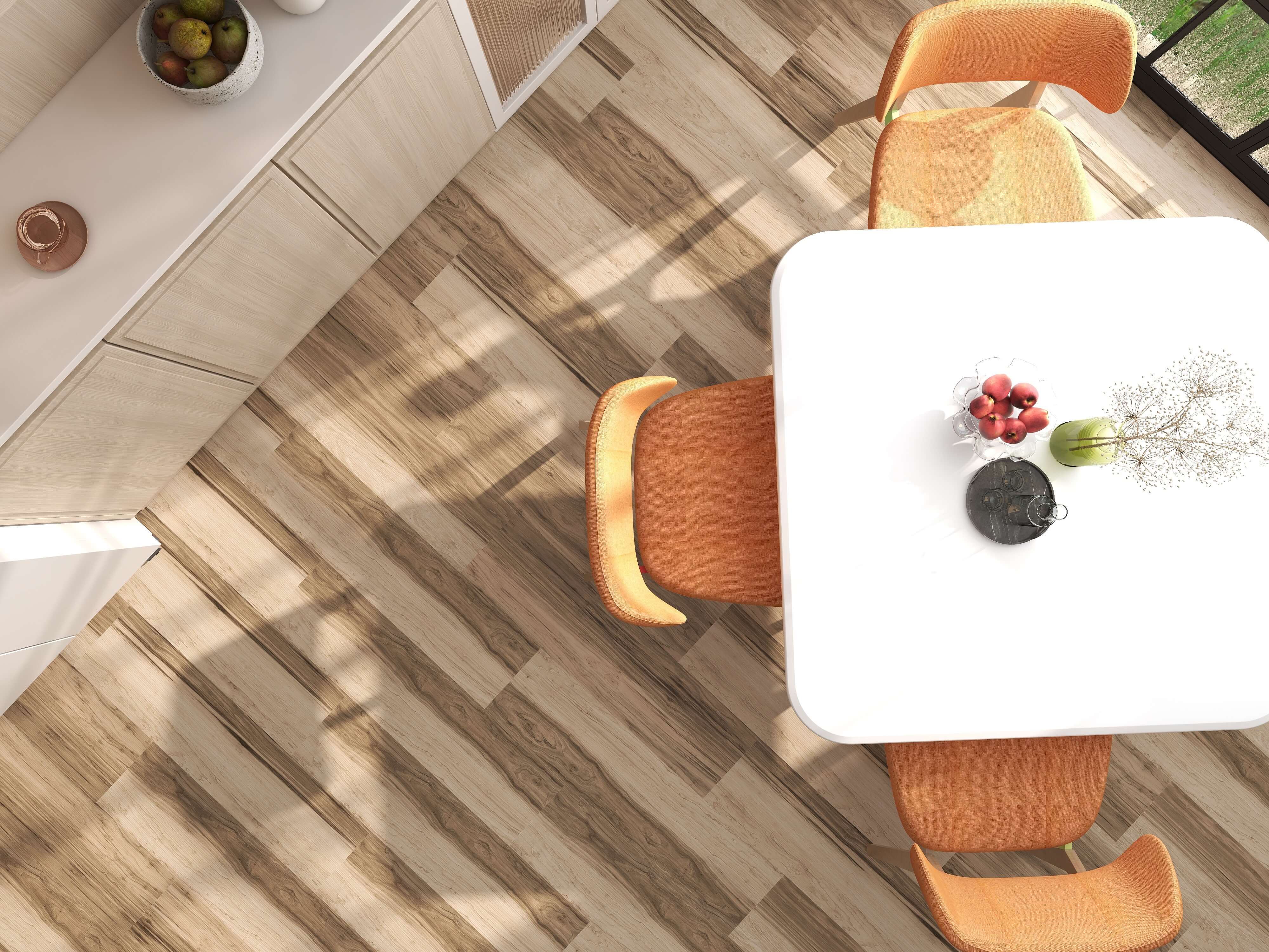 It's as if you've brought the great outdoors into your living room, without compromising an ounce of sophistication. The colour palette is a celebration of earthy tones, reminiscent of a breath-taking sunrise over the Fresco Valley. The planks fit together seamlessly, creating a mesmerising pattern that mimics the natural flow of wood. 🌲