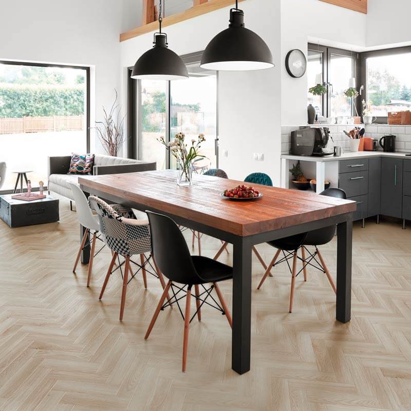 Luvanto Premium Click Plus Latte Oak Herringbone LVT ☕ – the cosy, latte-toned floor that brings warmth to your space without expecting a weekly pep talk. This herringbone pattern is refined but relaxed – think “classy, but I don’t need to shout about it.” It’s like your favourite coffee but without the risk of spills.