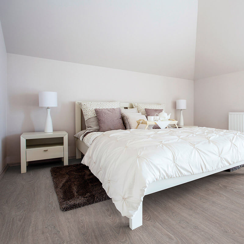You know that spectacular view you get when you go for a stroll in the woods on a chilly mid-afternoon in the middle of January and your warm breath hits the icy air and veils your vision with a translucent mist? Well the designers at Luvanto have captured this perfectly with its Grey Oak vinyl planks that boast a beautiful washed effect finish.