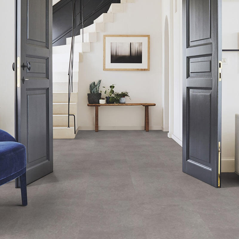 Tarkett Classics 30 Click Rigid luxury vinyl tiles in Polished Concrete Steel bring a bold, industrial vibe to your home. Perfect for kitchens, bathrooms, living areas, and hallways, this flooring isn’t just about durability—it’s about making a stylish statement in any room. 🏠🖤