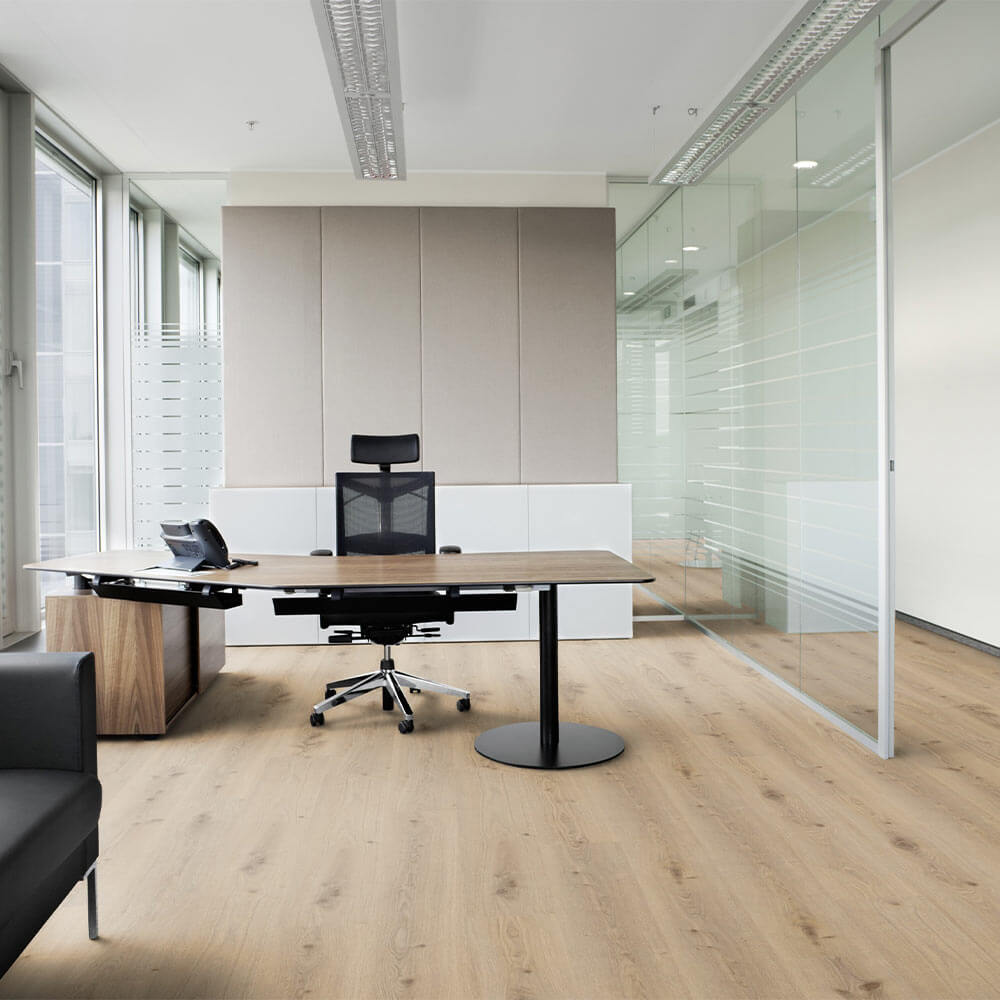 Looking to make your office space as natural and inviting as a morning coffee run? Primary Oak Natural from Tarkett Essence 55 luxury vinyl is your answer! Perfect for offices, retail stores, and any commercial space needing a touch of nature's charm. 🏢✨