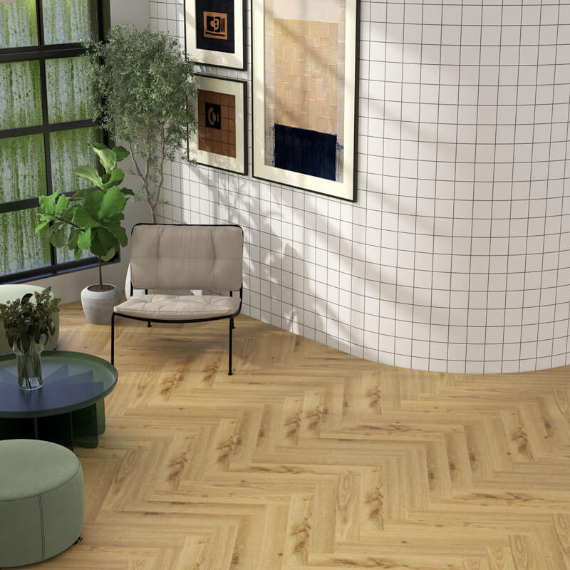 This Primary Oak Light Grey Herringbone colourway LVT features a sleek, contemporary oak pattern in a sophisticated herringbone design. It's so stylish, your floor might just become the most Instagrammed spot in the restaurant! 🌳📸