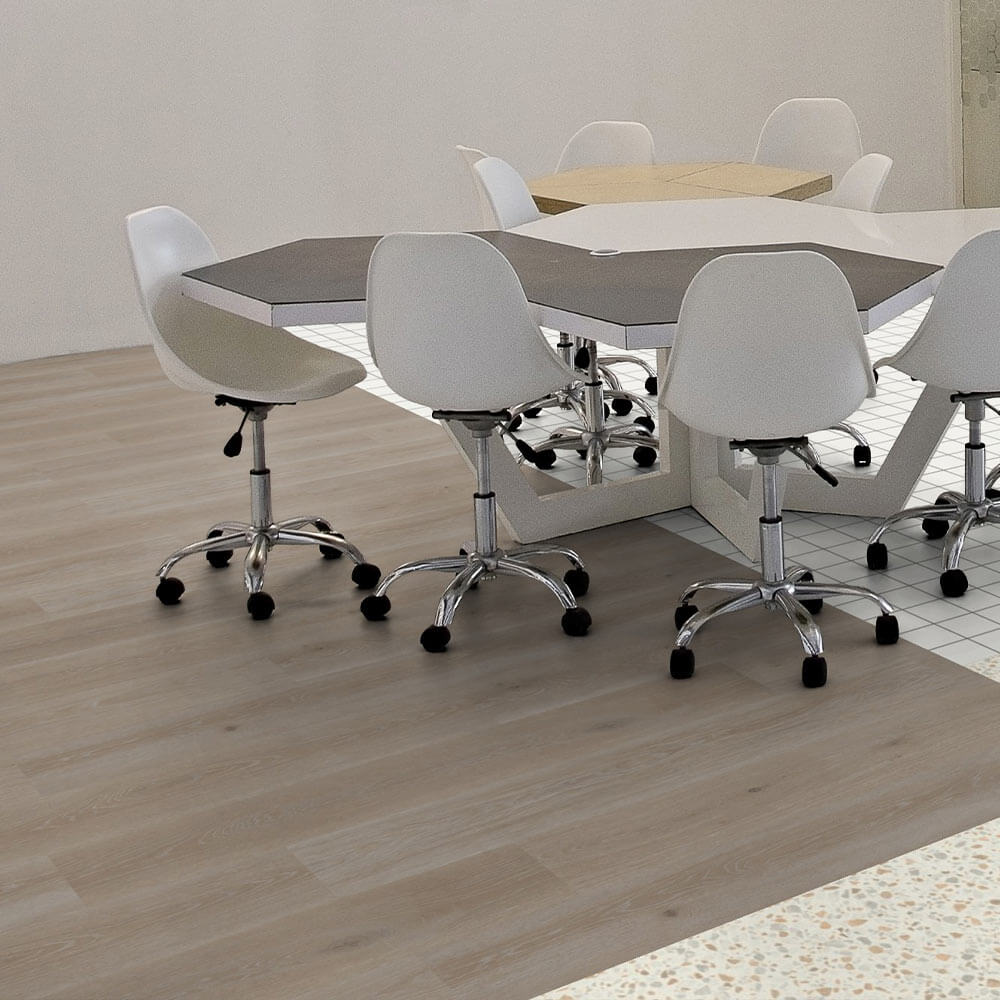 Is your reception area as exciting as a Monday morning meeting? Spice it up with Tribe Oak Grey colourway from Tarkett Essence 55 luxury vinyl! Perfect for offices, retail stores, and those long hallways where everyone pretends not to see each other. 🏢✨