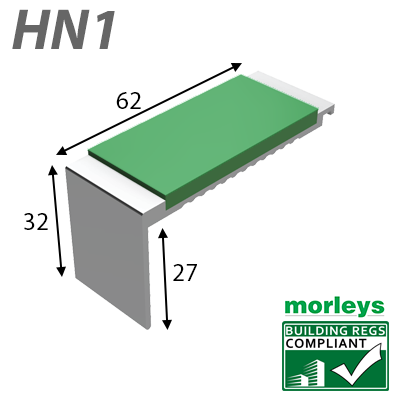 Mind how you tread with our durable aluminium HN1 stair nosings from Morleys. These crucial safety and flooring accessories are also commonly known as stair treads, stair edgings, or stair profiles, and are the robust, hard edging you frequently see on staircases in demanding commercial environments, public spaces, and high-traffic areas. The Morleys HN1 is specifically designed as a heavy-duty stair nosing solution, featuring a robust, straight-edge profile making it the ideal choice for use with various carpet, carpet tiles, and other heavy-duty smooth flooring solutions.