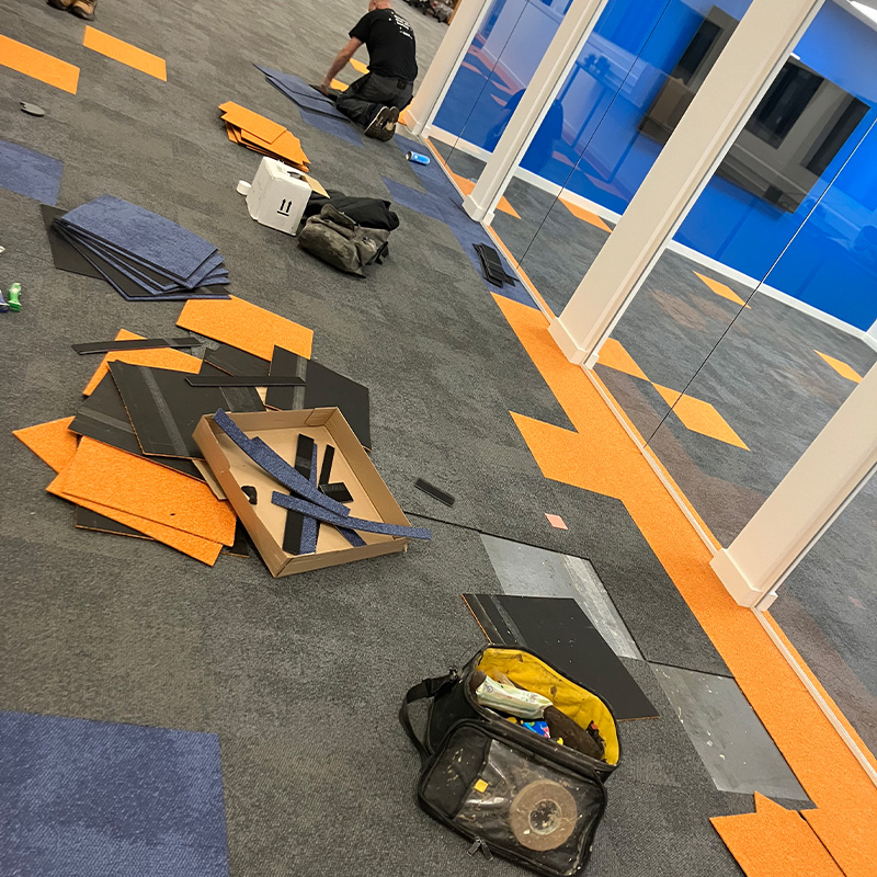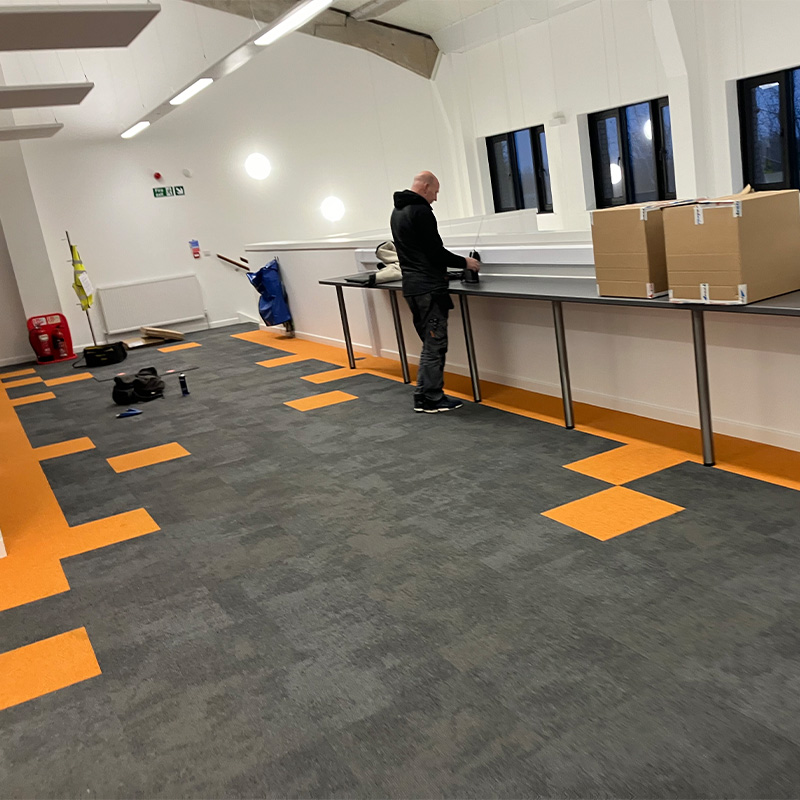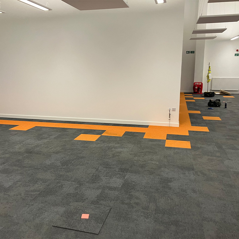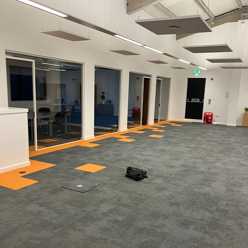 Our fab fitting team worked their magic at Accelonix Ltd. by swapping out the once eye-catching bright orange carpet with the more understated and classic blue shade of Interface Composure in Sapphire.