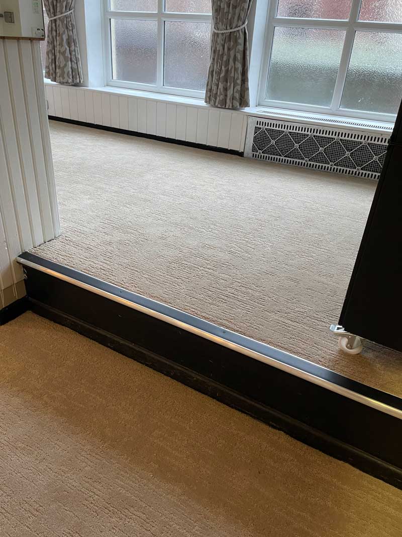 We recently completed a flooring installation at Alma Lodge Hotel in Stockport, enhancing the hotel's interior with our premium products. Our team fitted 384m2 of Balsan Sierra carpet rolls in the elegant colour 011, covering various areas throughout the hotel.