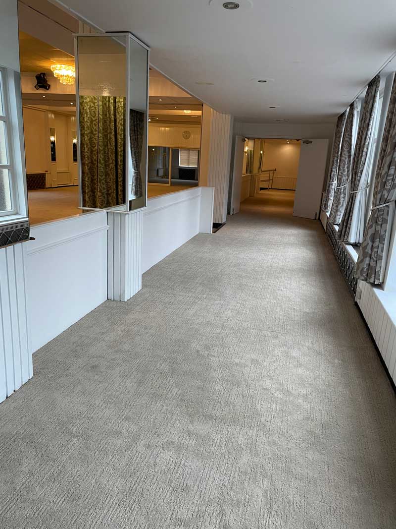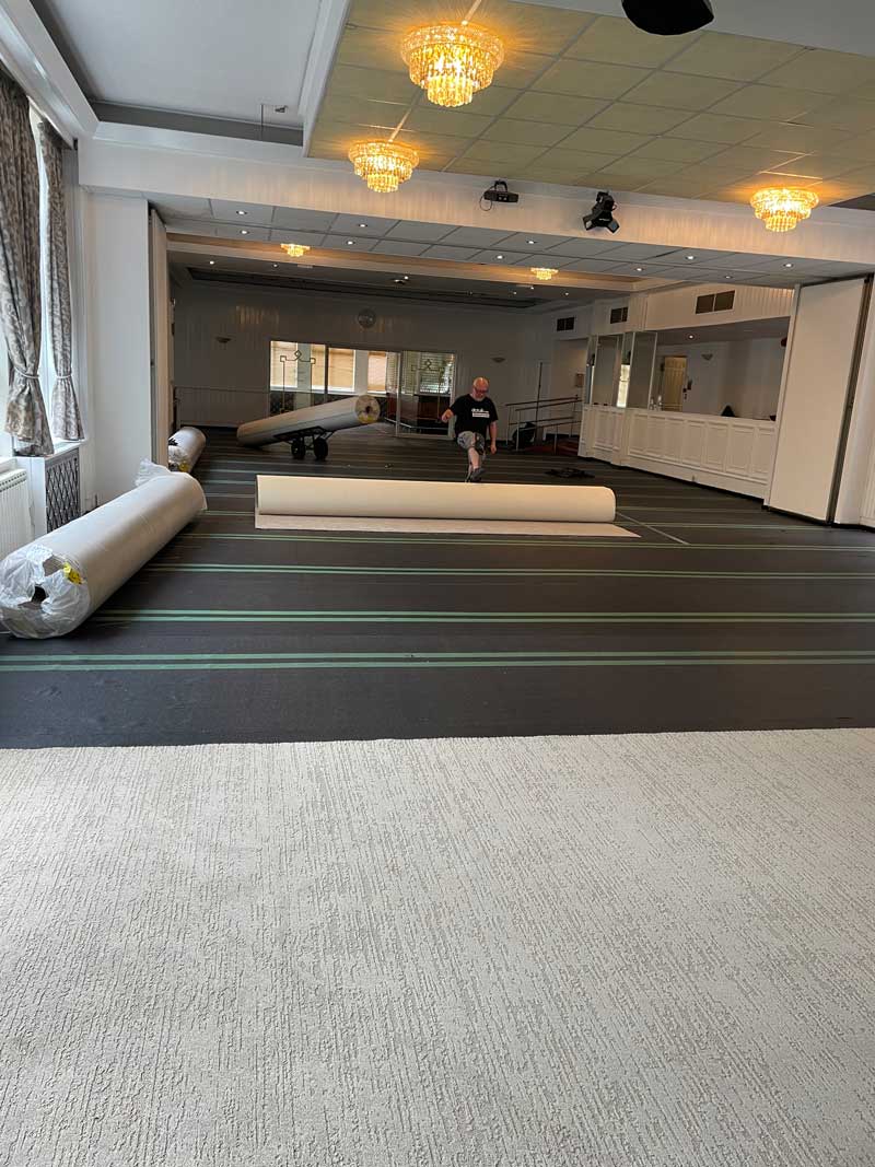 In addition to the carpet installation, we also used Duralay Durafit 500 underlay. This high-performance underlay is renowned for its excellent sound insulation, comfort, and durability, enhancing the overall lifespan and quality of the carpet. Its firm support and stability make it an ideal choice for commercial settings like hotels.