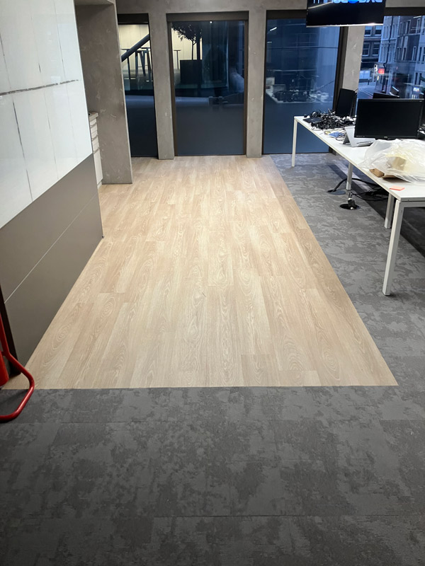 Our team ensured the flooring was perfectly installed to enhance the workspace, combining style and practicality. Whether it’s the comfort underfoot from the carpet tiles or the realistic wood aesthetics of the LVT, this project highlights how thoughtful flooring solutions can transform commercial environments into more inspiring and productive spaces.