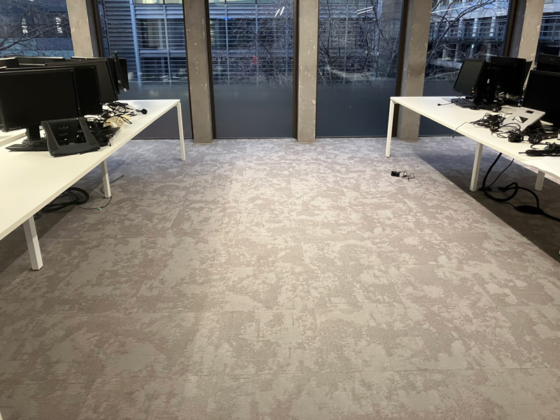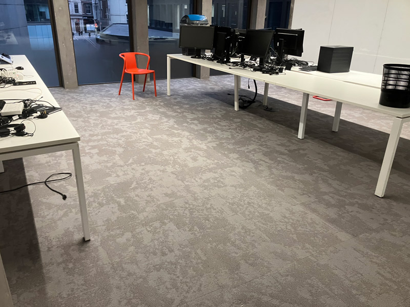 Our design team played a vital role in helping Deverell Smith Ltd visualise their flooring options by providing stunning 4K visuals. Using advanced design software, we recreated their space with precise details based on floorplans and images. This allowed the client to see how the Nouveau Ice Cream carpet tiles and Forbo Allura Flex LVT would look in their space before making a decision.