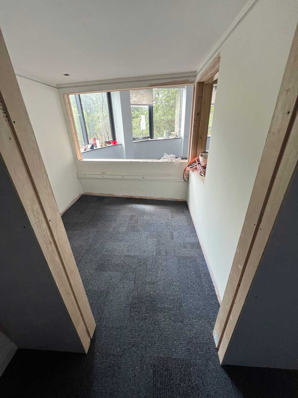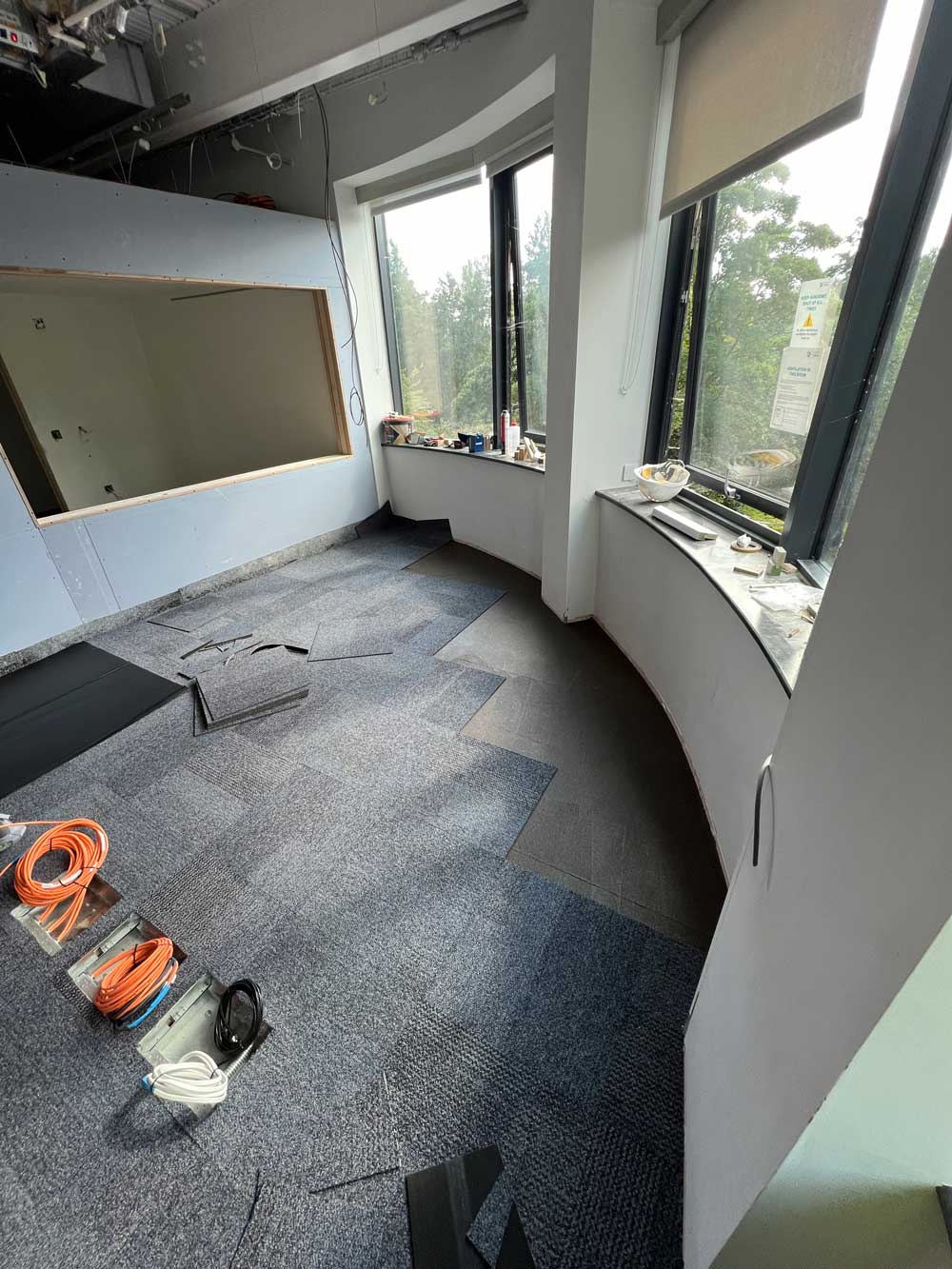 Additionally, our fitters installed SOUNDSENSE CC 3.0, a state-of-the-art underlay designed to enhance acoustic performance and provide added comfort. This underlay significantly reduces noise transmission, creating a quieter and more comfortable environment ideal for an audio-visual workspace.