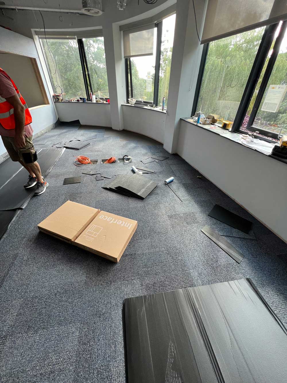 We recently completed a flooring installation at Excite Audio Visual Ltd, University of York, providing a modern and durable solution for their workspace. Our team installed 110 square metres of Interface Transformation carpet tiles in the elegant colour Baring, ensuring a professional and stylish finish.