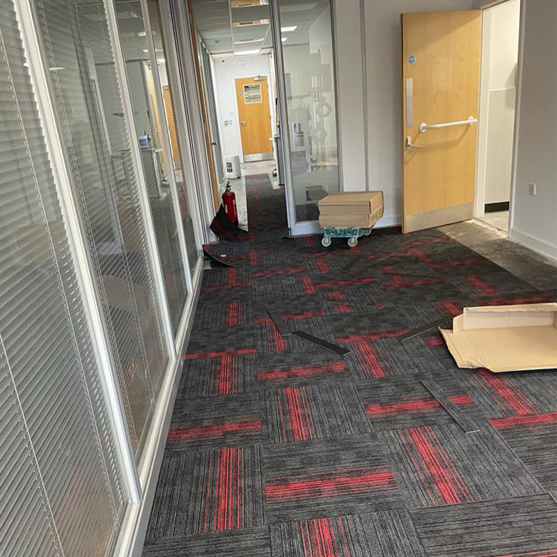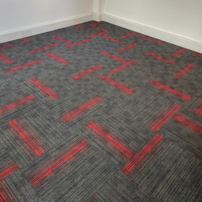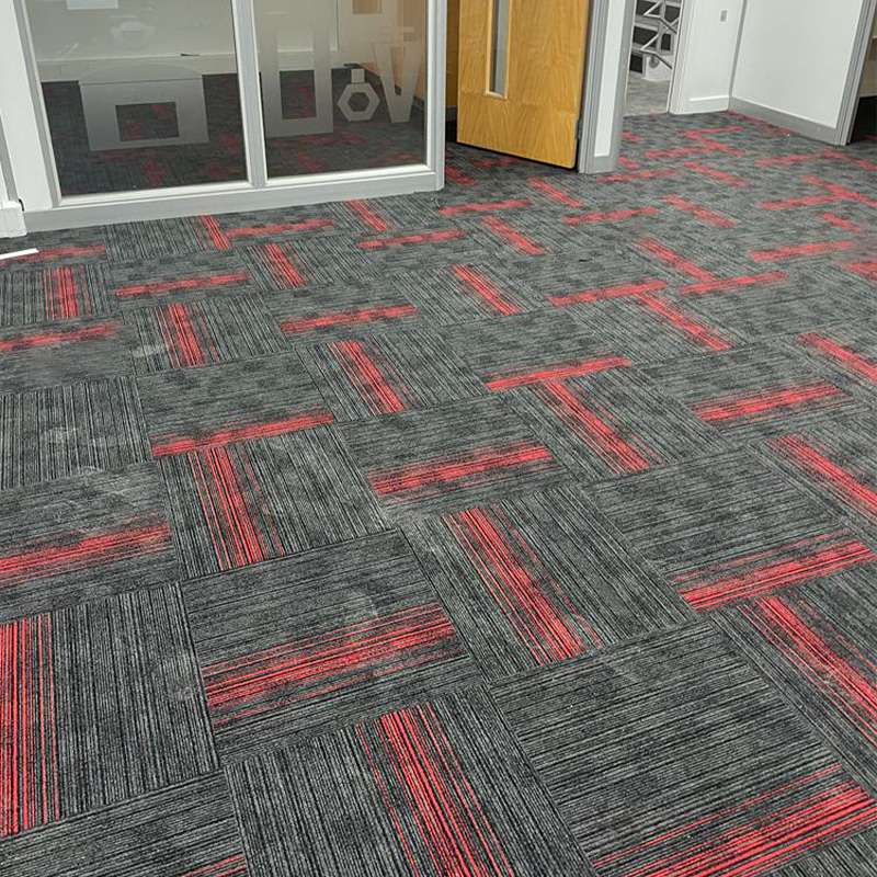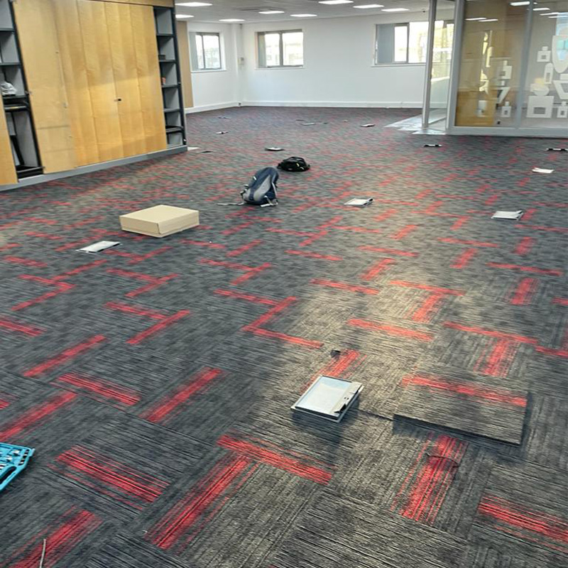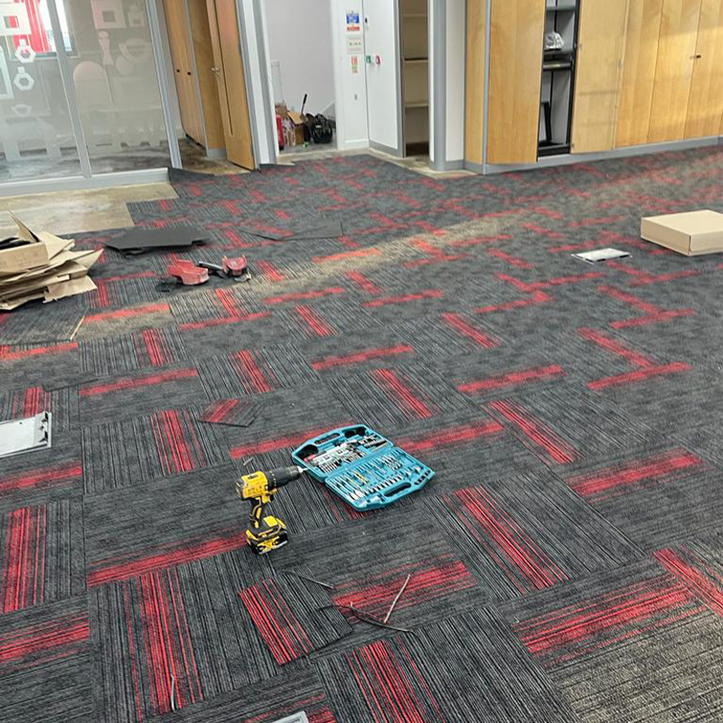 The building's aging floors required meticulous attention, prompting the team to put in extra effort to smooth out imperfections before laying down the avant-garde carpet tiles.