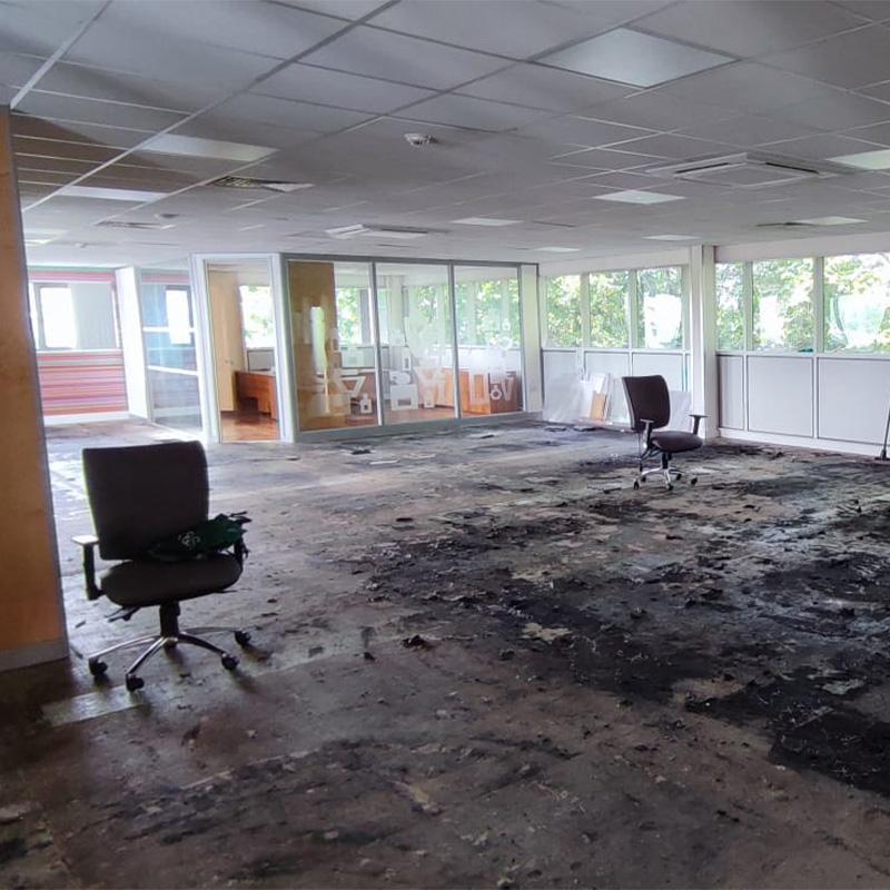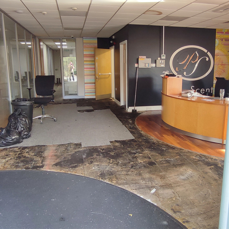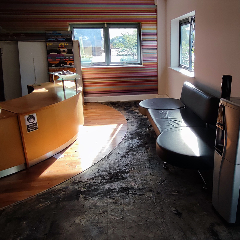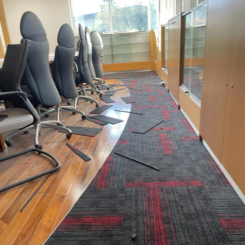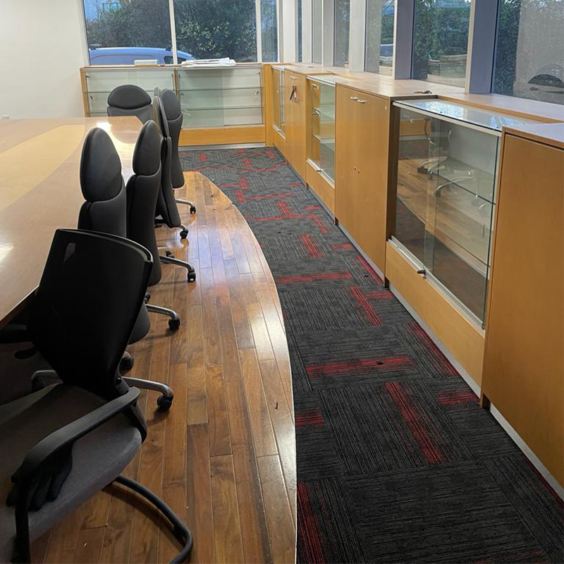 The building's aging floors required meticulous attention, prompting the team to put in extra effort to smooth out imperfections before laying down the avant-garde carpet tiles.