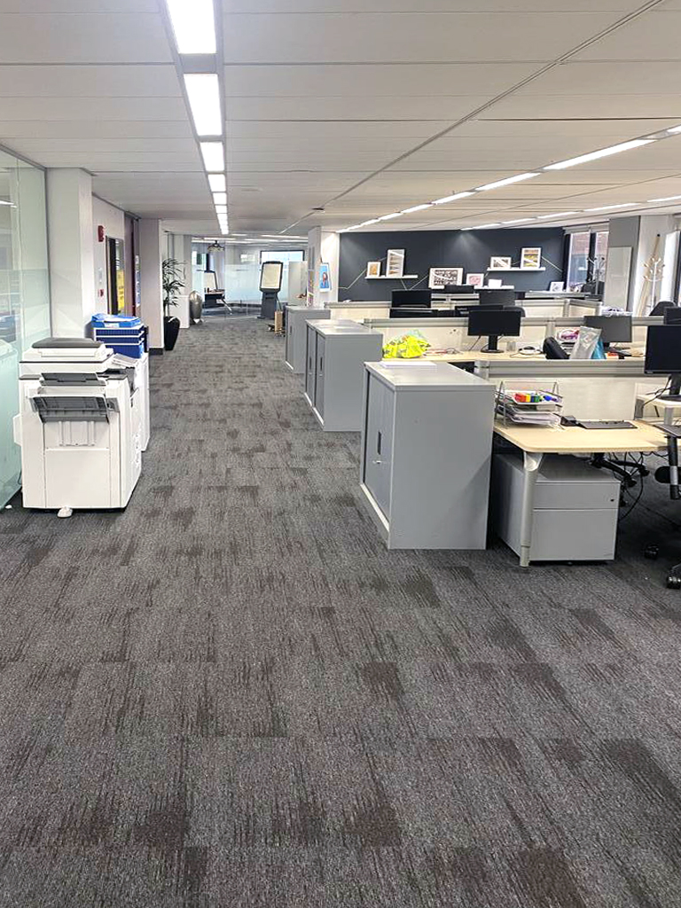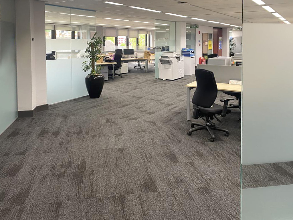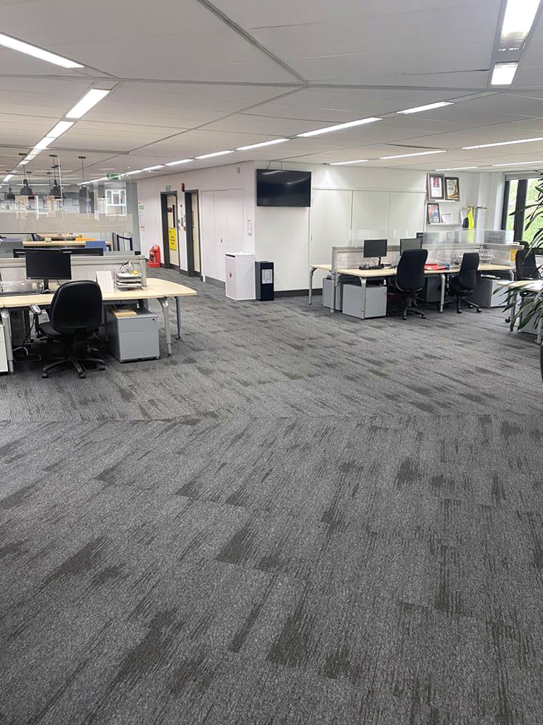Our expert fitters ensured a seamless installation process, removing the old flooring and replacing it with the new tiles efficiently and professionally. The Desso Essence Structure tiles not only enhance the aesthetic appeal of the office but also offer exceptional durability and comfort.