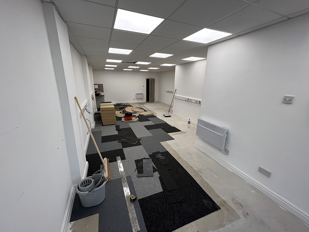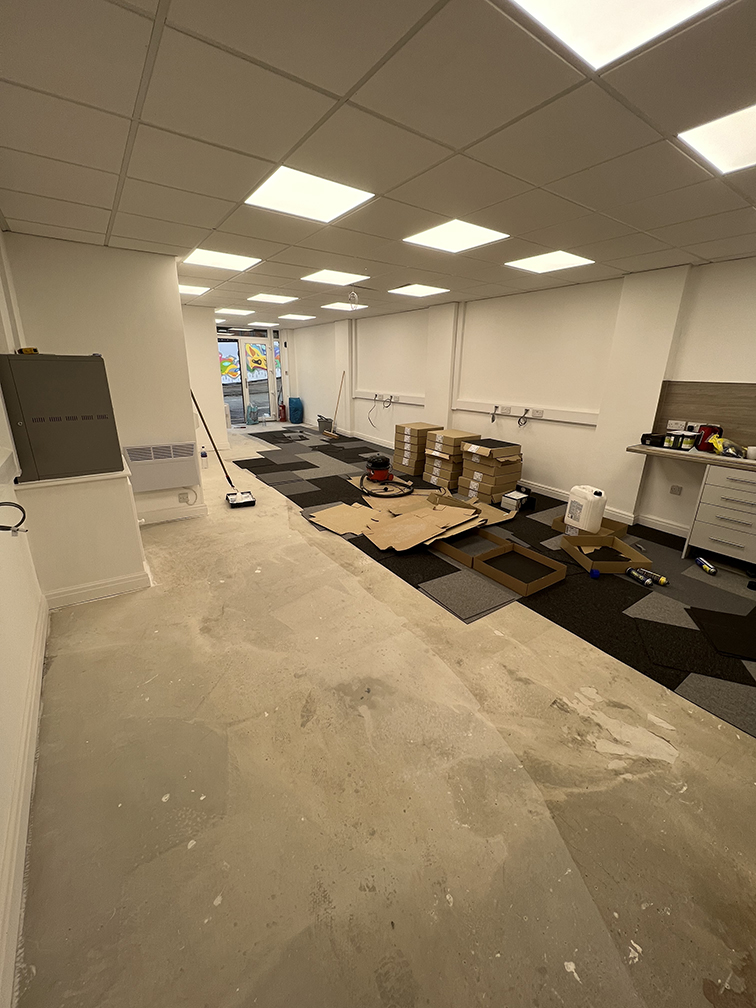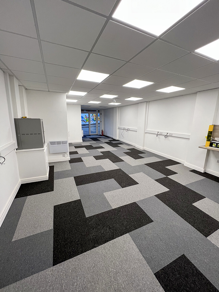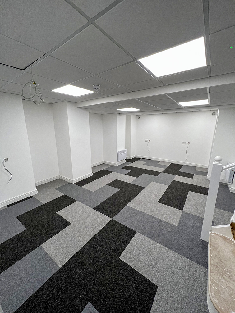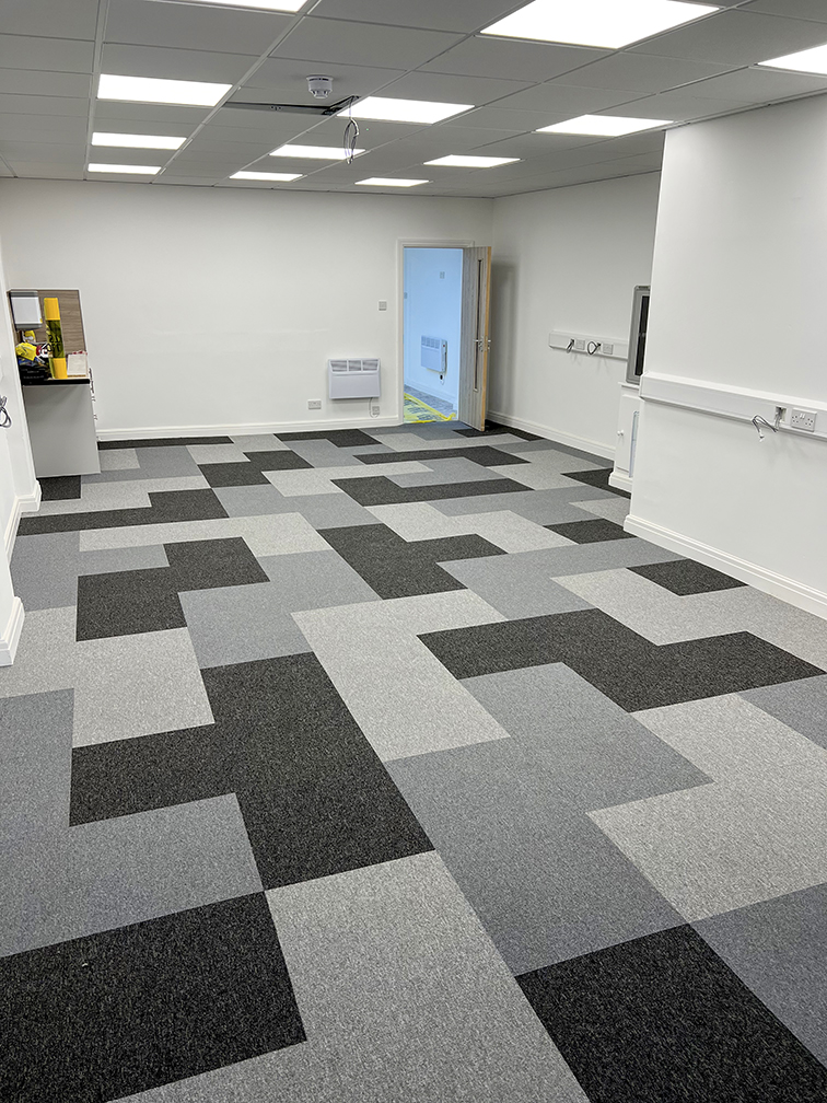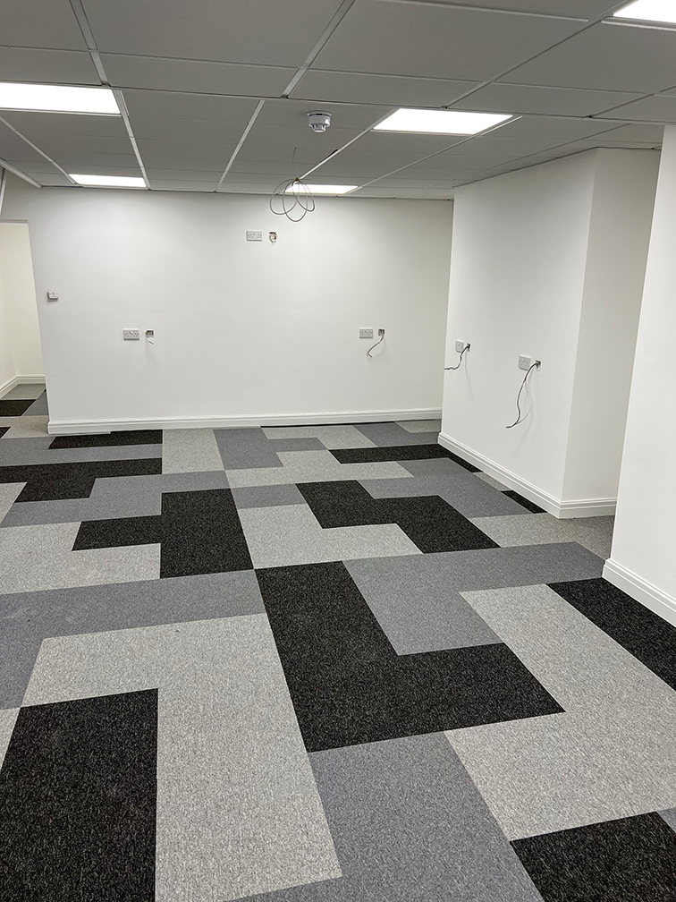 Our amazing DCTUK team has fitted the Nouveau Elite Colour Tephrite Carpet Tiles into the Perfect Shutters, in Liverpool.